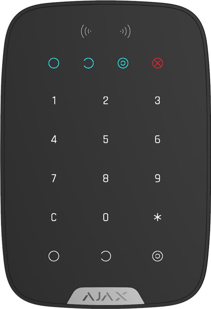 Trådlös manöverpanel med touchknappar och inbyggd DESfire läsare för AJAX passerbrickor och kort.