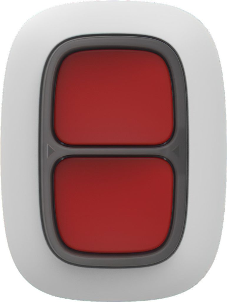 Överfallsknapp med dubbeltryck med tvåvägskommunikation. För att aktivera larm måste båda knapparna tryckas in samtidigt. En blinkande LED-indikering verifierar att larmet gått fram ordentligt. Knappen kan även aktivera olika scenarion vid överfall t.ex. trigga en dimgenerator, låsa lås eller stänga jalusier.