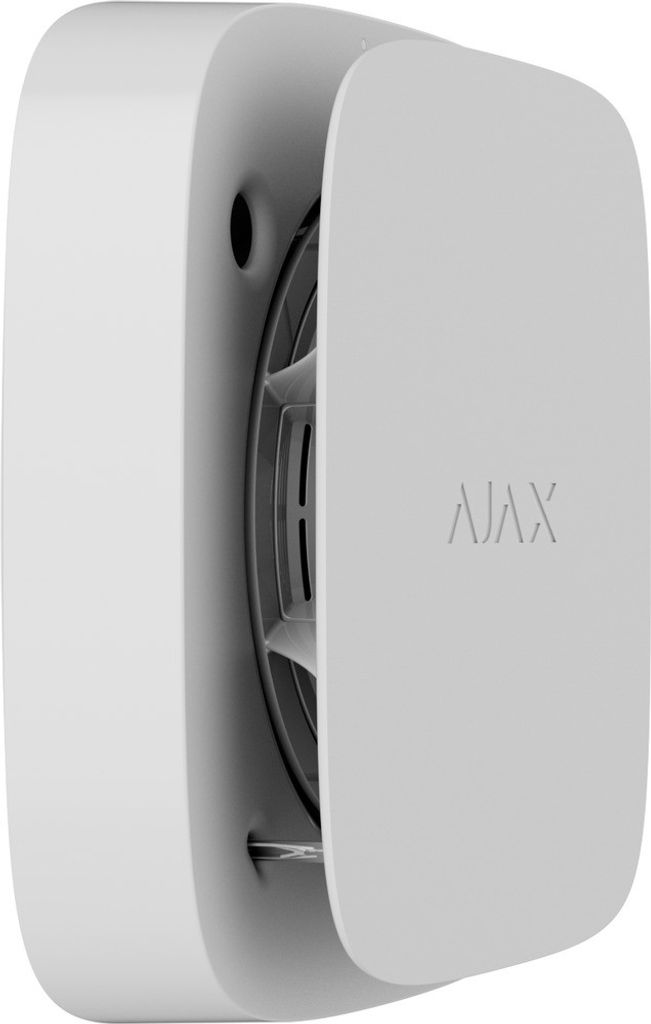 Generation 2 av Ajax trådlösa rök-/värmedetektor med utbytbara batterier. Detektorn har inbyggd siren och ljusindikering och är avsedd för inomhusmontage. Detektorn larmar när rök kommer i kammaren men även vid temperaturförändringar i rummet. Vid larm ljuder siren samt ljusindikeringen lyser rött. Detektorn kan även konfigureras så att när en har detekterat rök/värme så kan man få alla rök-/värmedetektorers inbyggda sirener att ljuda i sin anläggning.