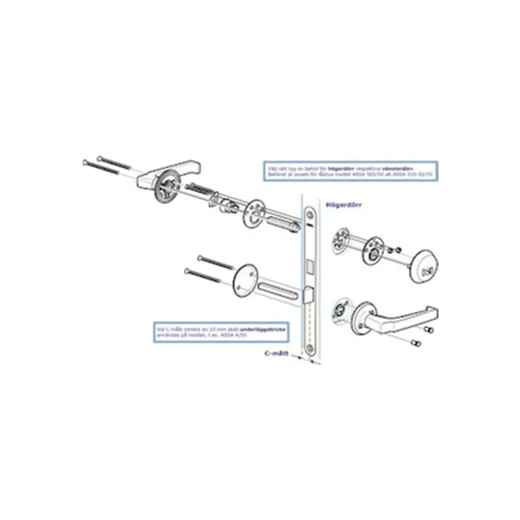 - Vid C-mått under 20 mm krävs täckskylt (t.ex. Assa Abloy 4291)