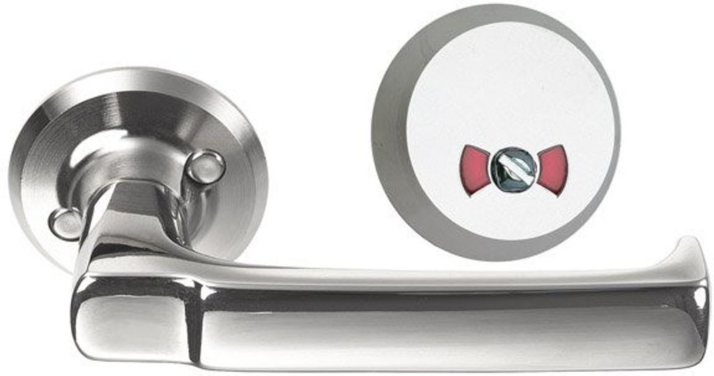 Montera insidans flip-up-trycke [9] och utsidans toalettskylt [8] med 2 st M5-skruvar [10]. Anpassa skruvlängden efter dörrens tjocklek.