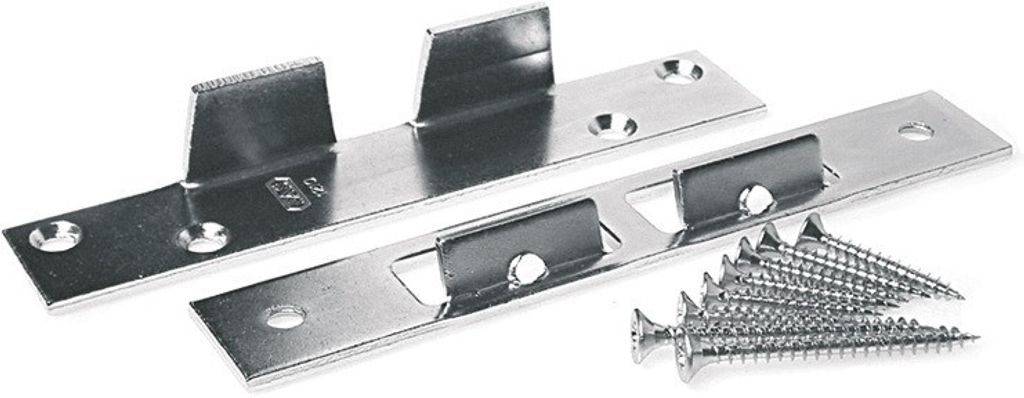 Bakkantsbeslag för skydd av dörrens gångjärnssida. Består av ett slutbleck som monteras i karmen och en platta med gripklor som monteras i dörren. Snedställda skruvar som hjälper till att ge en brythållfasthet över 700 kg. (Ej försäkringsgodkänd.)
