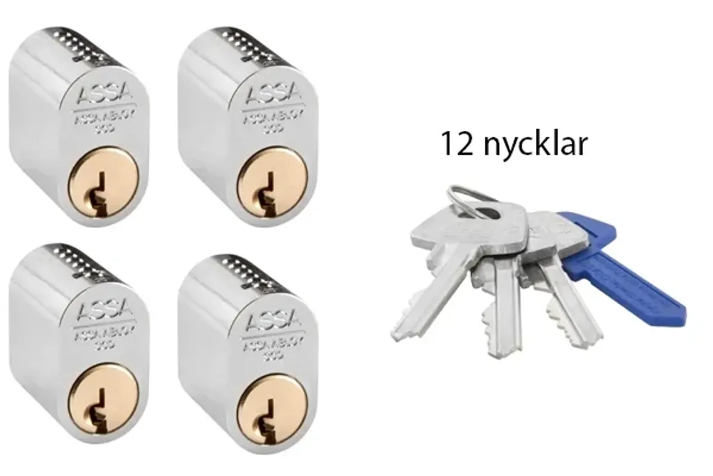 Cylinder 1201 från ASSA d12-serien är en oval enkelcylinder. Cylindrarna har lika låsning (LL) vilket innebär att nyckeln passar till alla cylindrar.