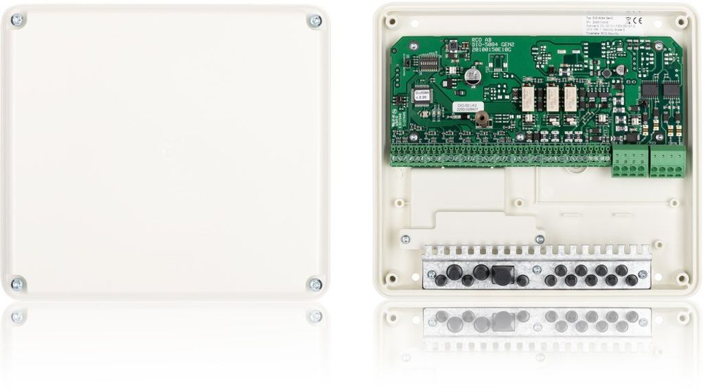 DIO-enhet för larmsektioner och / eller anslutning av max två kortläsare (en inläsare & en utläsare). Används för att ansluta tillbehör såsom ellås, öppnaknapp, dörravkänning, dörrautomatik, hisstyrning, magneter, IR-detektorer och andra ev. tillbehör Ansluts mot UC-50 via lokalbuss RS-485.