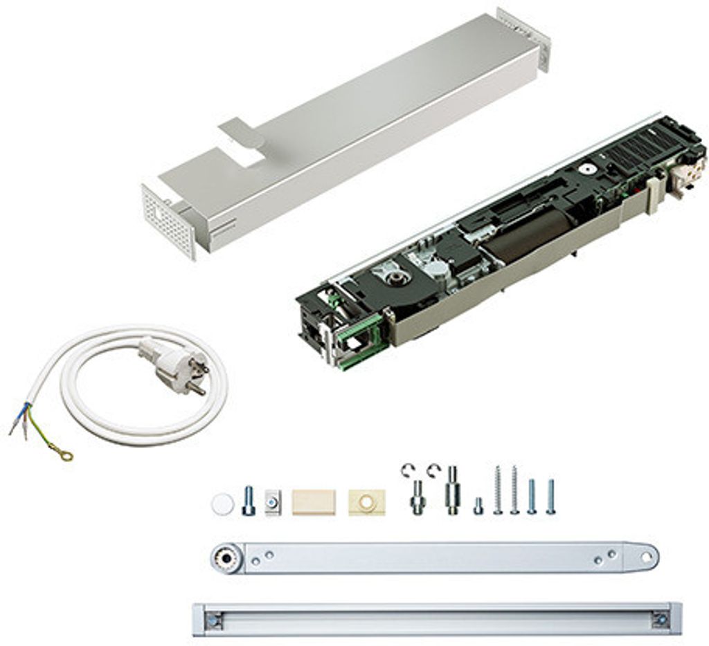 Dörrautomatik ED 250LE NY med automatikhus, kåpa, glidskena och nätkabel.