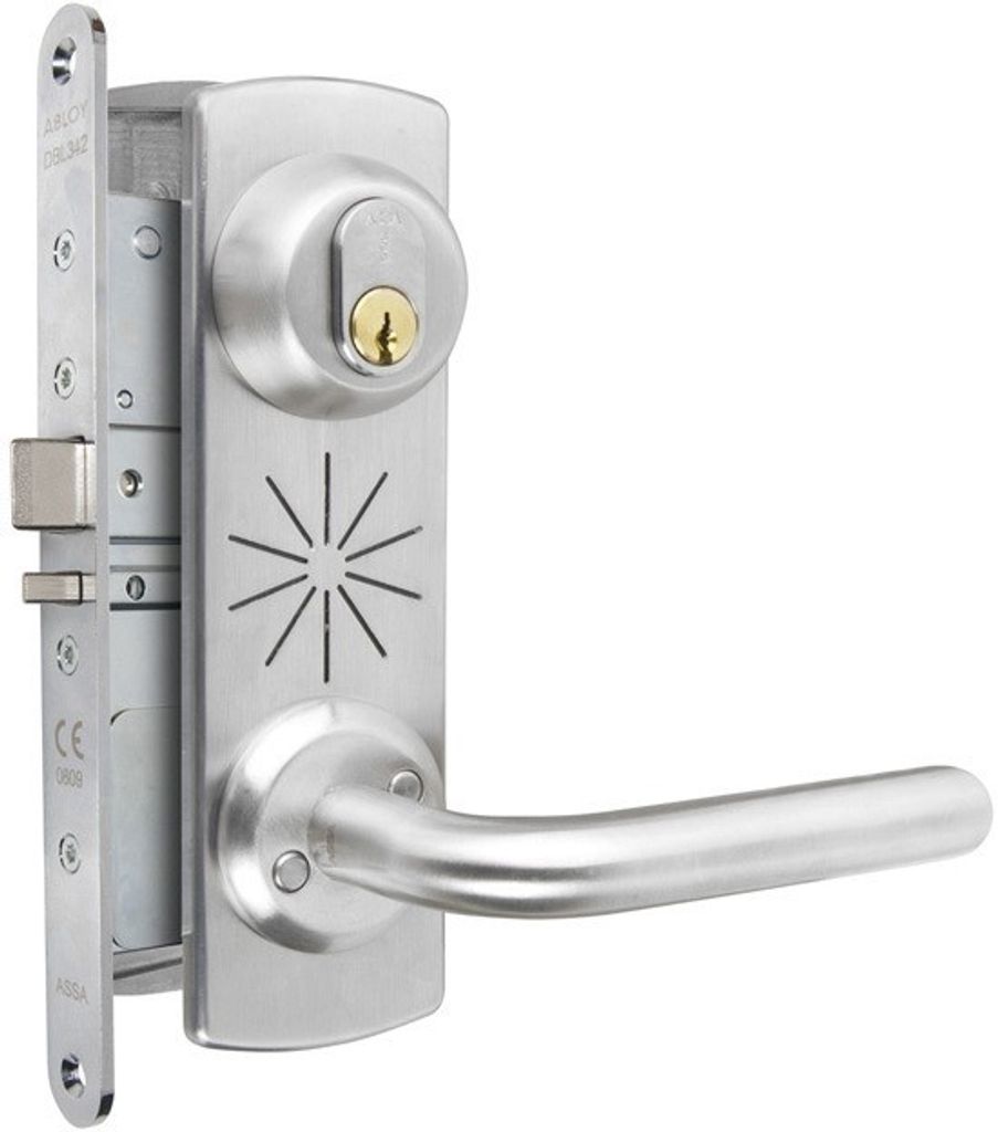 Inga extra hål behöver borras i dörren för montering av låshus eller läsarenhet då kabeln förläggs inne i eller utanpå dörren. Enheten kompletteras med trycke och låscylinder efter önskemål. DBL342 används främst på innerdörrar som springskydd i lokaler som inte kräver högsta säkerhet (personlig kod). Exempel på sådana lokaler är omklädningsrum, interna förråd, innerdörrar, källardörrar och kontor.