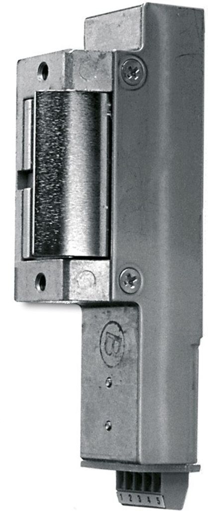 Standardelslutbleck, kan användas för såväl invändig låsning i dörrar som för daglåsning i skalskyddsdörrar där normalt ställda krav på säkerhet ställs. Kan tillsammans med dubbelfallås och passande monteringsstolpe användas som igenhållande låsning i brandklassad dörr. För att skydda styrande elektronik mot transienter ska skyddsdiod 8041115 monteras. Normala säkerhetskrav. Rättvänd funktion, låskolvskontakt.