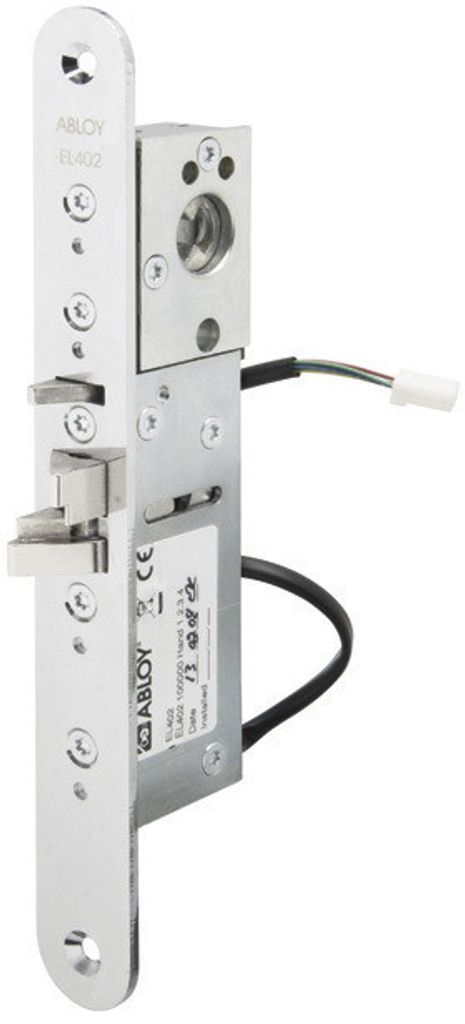 EL402 är ett elektriskt styrt lås med dubbelfunktionskolv och automatisk förregling då dörren stängs. Slutbleck AE 307 medföljer. Låset kan styras med de flesta på marknaden förekommande styrfunktioner, t.ex. passersystem, kodlås, tryckknapp och kopplingsur. Dorndjup är justerbart 25, 28, 30, 33 och 35 mm. Förreglingen upphävs med elektrisk styrning eller med cylinder/vred. När förreglingen är upphävd kan dörren dras/skjutas upp. Dubbelfunktionsfallen dras ej in utan viker undan.