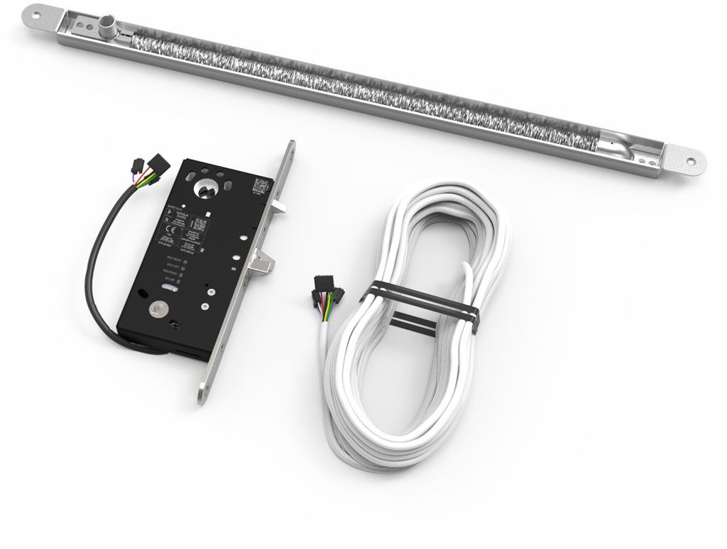 SAFETRON SL630 SECURE i satsförpackning. Satsen innehåller: låshus, anslutningskabel C02 (10m) samt karmöverföring CT81