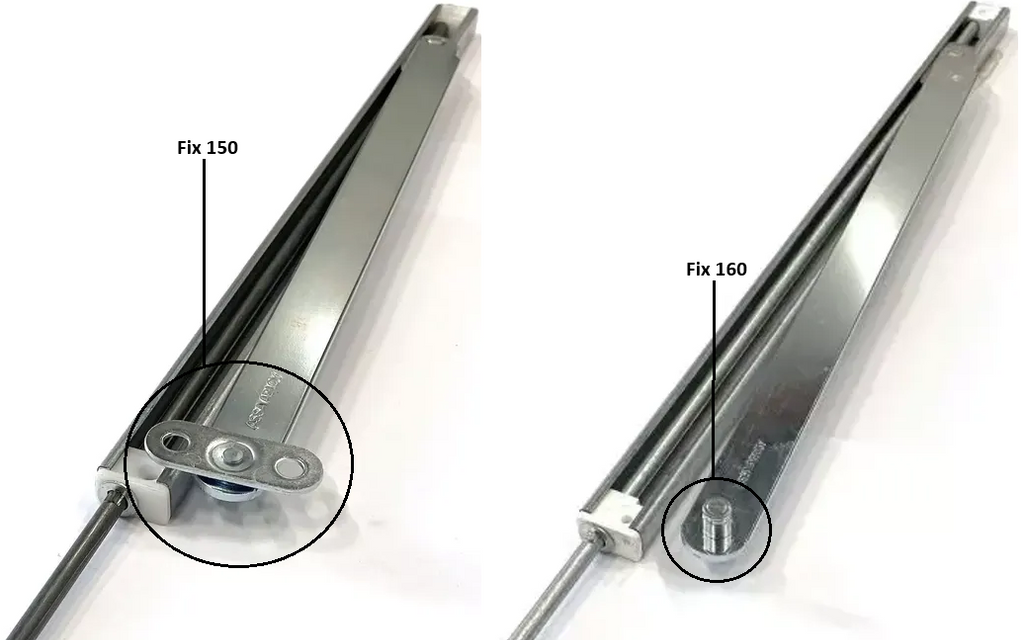 Skillnaden mellan Fix 150 och Fix 160 är utformningen på fästet som fästs emot karmen.