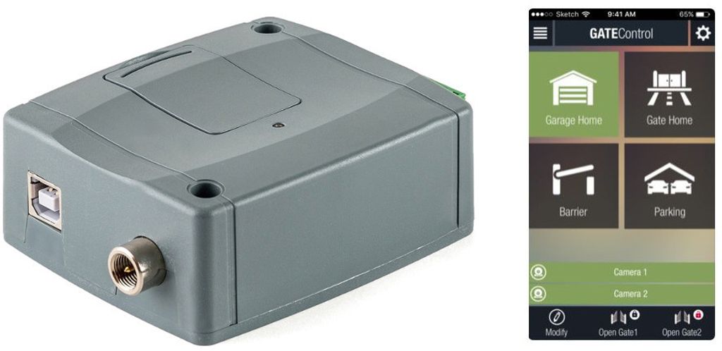 GSM Gate Control PRO 1000 - 4G är en fjärrstyrning som gör det möjligt för upp till 1000 användare att öppna en grind, port eller bom till parkering eller parkeringshus från en mobiltelefon via den tillhörande mobilappen, samtal eller SMS. Användare kan läggas till och enheten kan fjärrkonfigureras via mobilappen eller med PC-programvaran via internet (alt. USB).