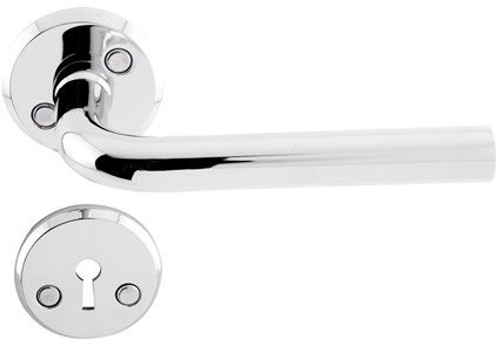 Innerdörrshandtag med matt krom ytbehandling, perfekt för villa, radhus, lägenhet och kontor. Tillverkat av zink och designat för att passa dörrtjocklekar mellan 35-45 mm. Detta handtag levereras med matchande nyckelskyltar och skruvar i förpackningen. Toalettbehör ASSA ABLOY 14890 i samma designserie säljs separat.