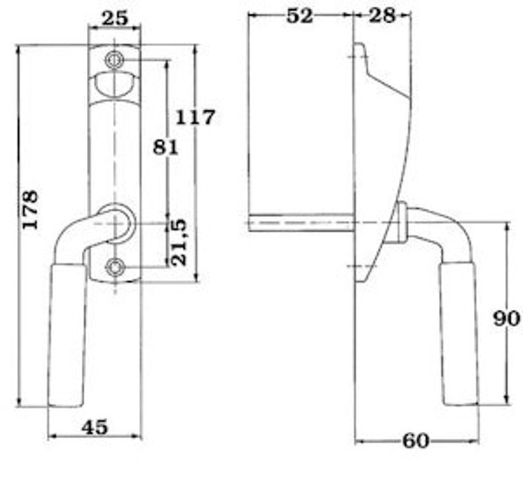 - Monteringsdetaljer: Fästplatta 28x117 mm med c/c hål 102 mm; skruv för montering ingår.