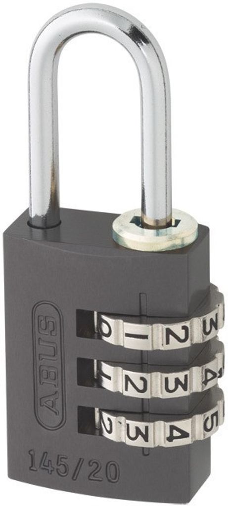 Kombinationshänglås ABUS 145 aluminium. Lättanvänt och robust hänglås utan nyckel. Skydda dina tillhörigheter på ett säkert och smidigt sätt.
