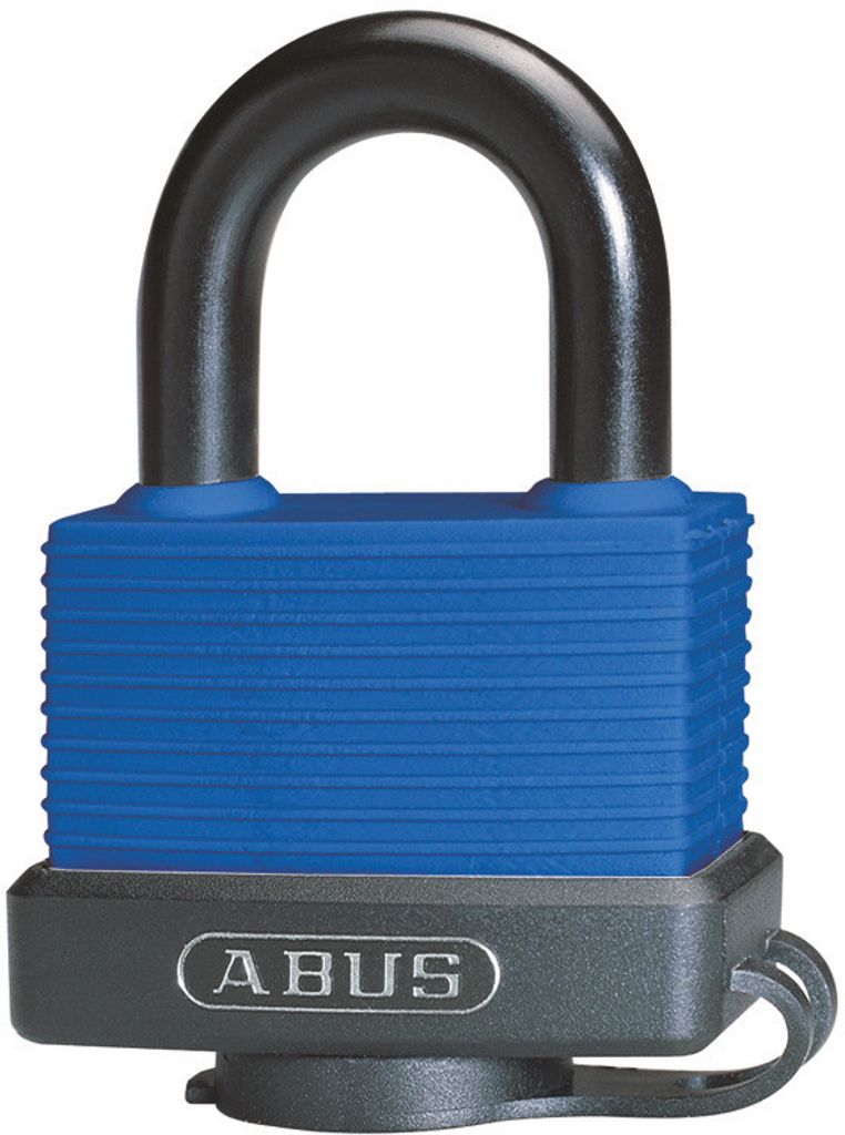 Låshus av mässing, bygel av rostfritt stål. Hela låset helt kapslat med mjuk plast, även bygeln. Helt skyddad mot smuts och vatten, skyddar även t.ex. båtar mot repor. Innerdelar av rostfria material. SSF Klass 1.