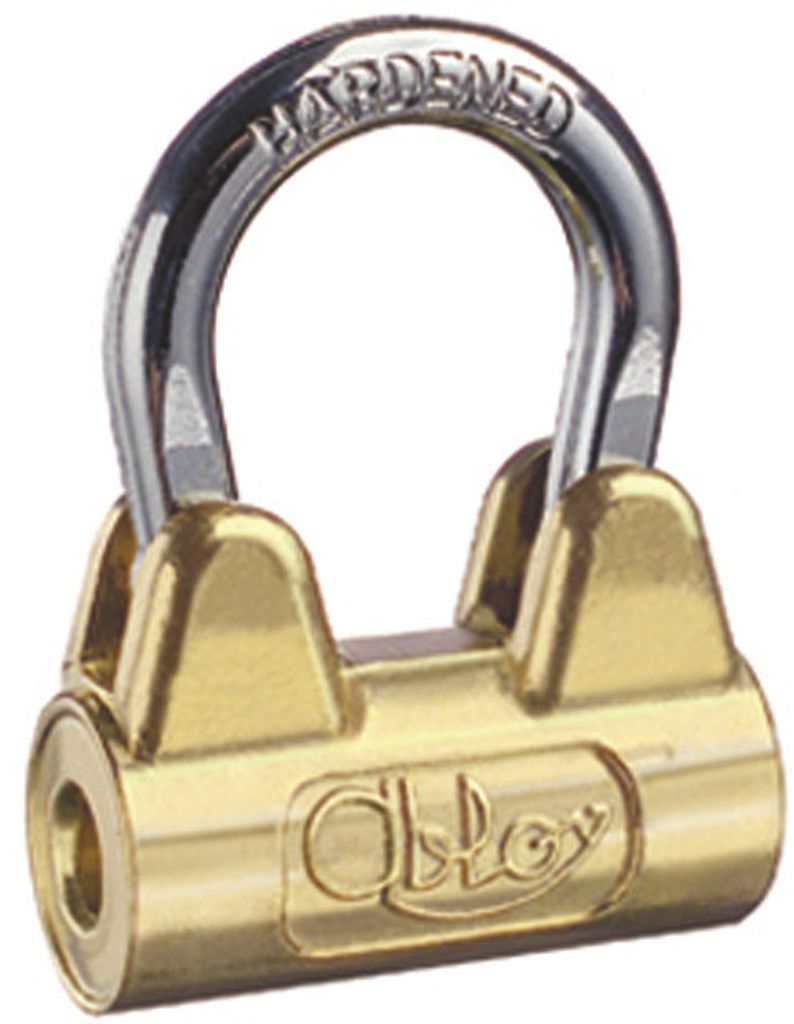 Låshus i mässing. Bygel av förkromat ythärdat stål. Två nycklar ingår, urtagbar endast i låst läge.