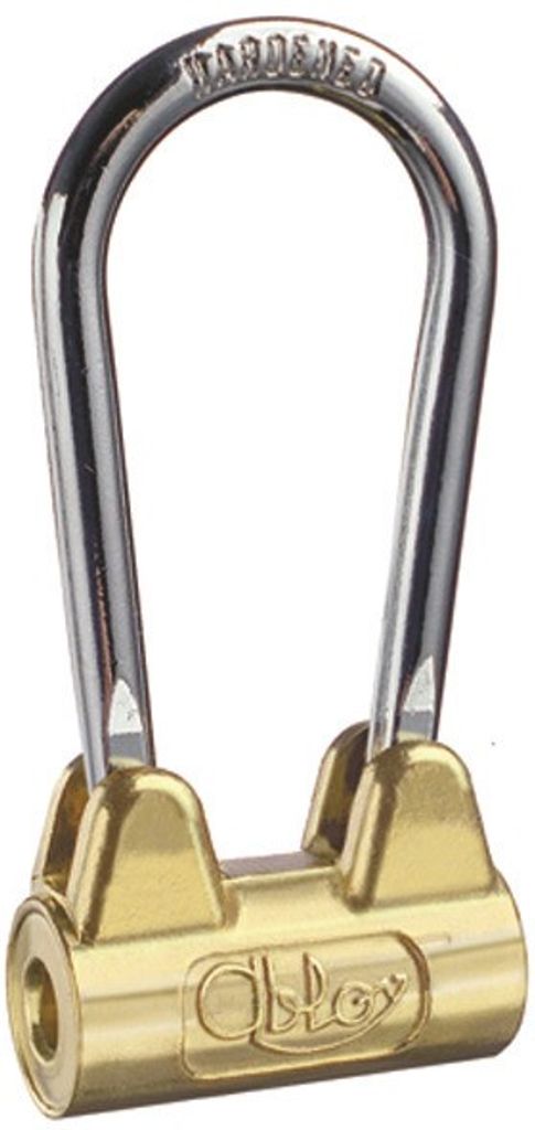 Låshus i mässing. Bygel av förkromat ythärdat stål. Två nycklar ingår, urtagbar endast i låst läge.
