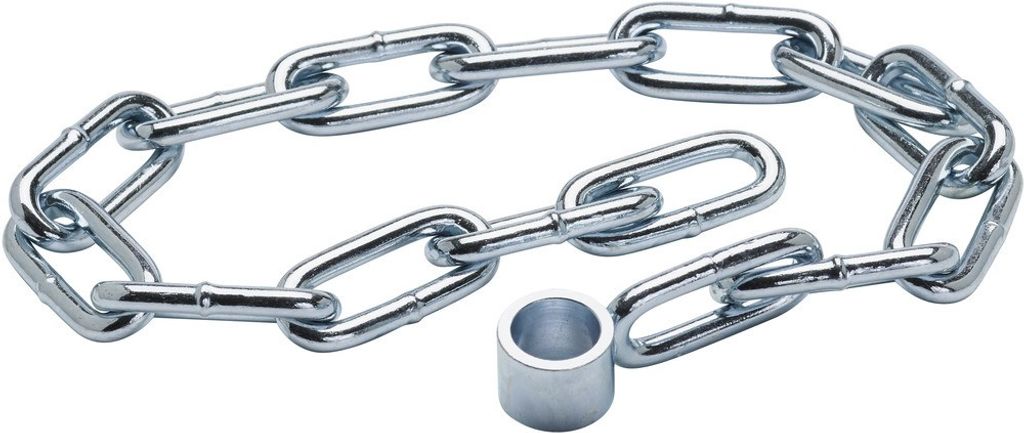 Hänglåskedja med ett rör. Kedjan hjälper dig att hålla hänglåset på plats eller att förhindra stöld. Kedjan träs på hänglåsbygeln. Längd 500 mm, diameter 5 mm. Den lösa ändan svetsas fast, eller fästes på lämpligaste sätt. Finns i varianter för bygeldiameter 8 -15mm.