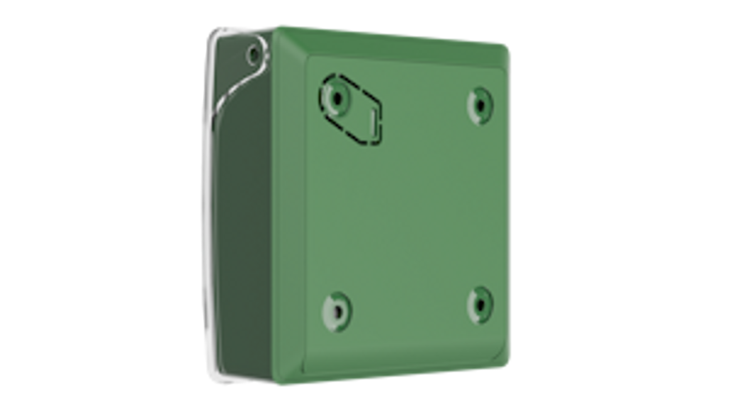 Trådlös brandlarmsknapp för utanpåliggande montage inkl. transparant skyddslock.