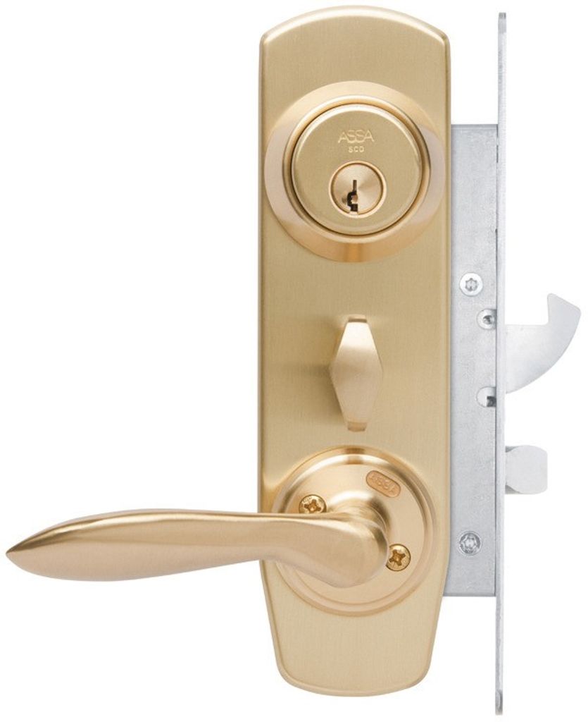 Lås Entre K1 komplett mattmässing