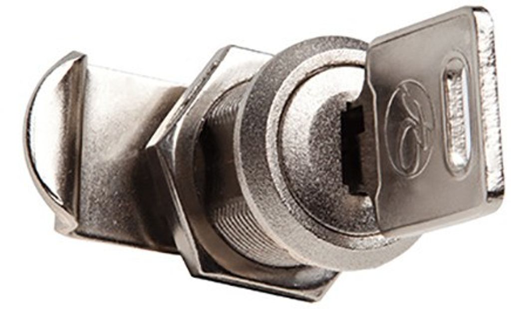 Ett cylinderlås vänster som passar till en enskild lucka i en fastighetsbox av modellen Svenskboxen. Fyra stycken nycklar medföljer till varje lås.