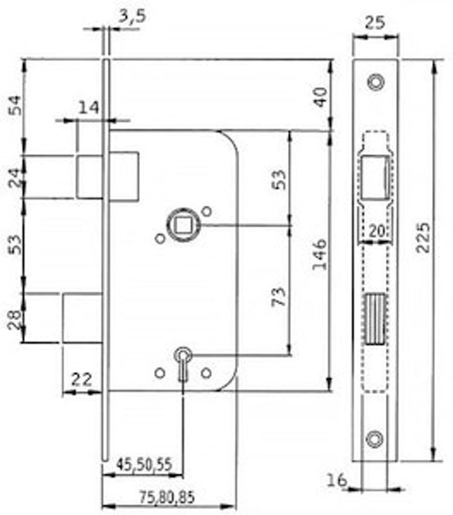 Med 7 tillhållare. Passar i dörrar med äldre urtagsstandard där nyckelhålet sitter under trycket. Fallkolven är vändbar. Nyckeln kan ej tas ur låset förrän efter två varvs vridning. Följande slutbleck passar: Höger plant, 2411. Höger vinkel, 2413. Vänster plant, 2421. Vänster vinkel, 2423. Levereras förzinkat med 3 nycklar. Skylt och trycke ingår ej.