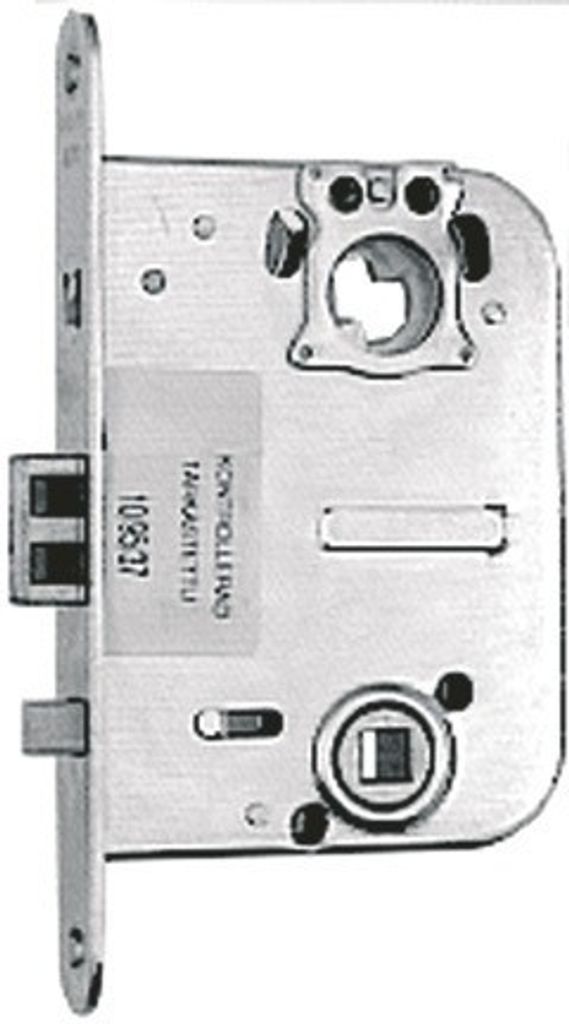 För mellandörrar med automatisk förregling. Förreglingen styrs med knappen i stolpen. Ej vändbart. Upp: förregling, fallkolven ut 20 mm. Låset kan öppnas endast med nyckel eller vred. Ner: Fallkolven ut 14 mm, låset kan öppnas även med trycke. Slutbleck 0045 passar.