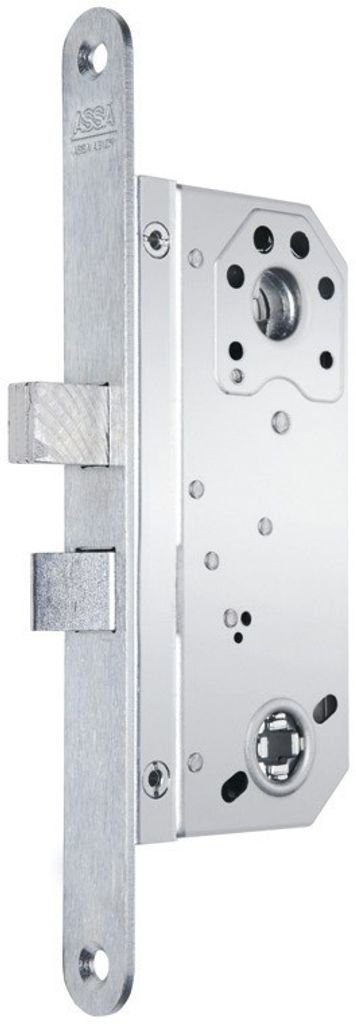 Låshus för ytter- och innerdörrar, kontorslokaler, industrier etc. Med tryckesfall och regel. Automatisk förregling av regel vid 21 mm utlåsning. Vändbar tryckesfall för alternativ dörrhängning. Tryckesfall av stål för brandklassade dörrar. Kan förses med toalettbehör. Kan erhållas med 70 mm dorndjup. Regeln låses ut och in med nyckel eller vred. Tryckesfallen dras in med trycke, nyckel eller vred. 565 SB både med sym/osym.