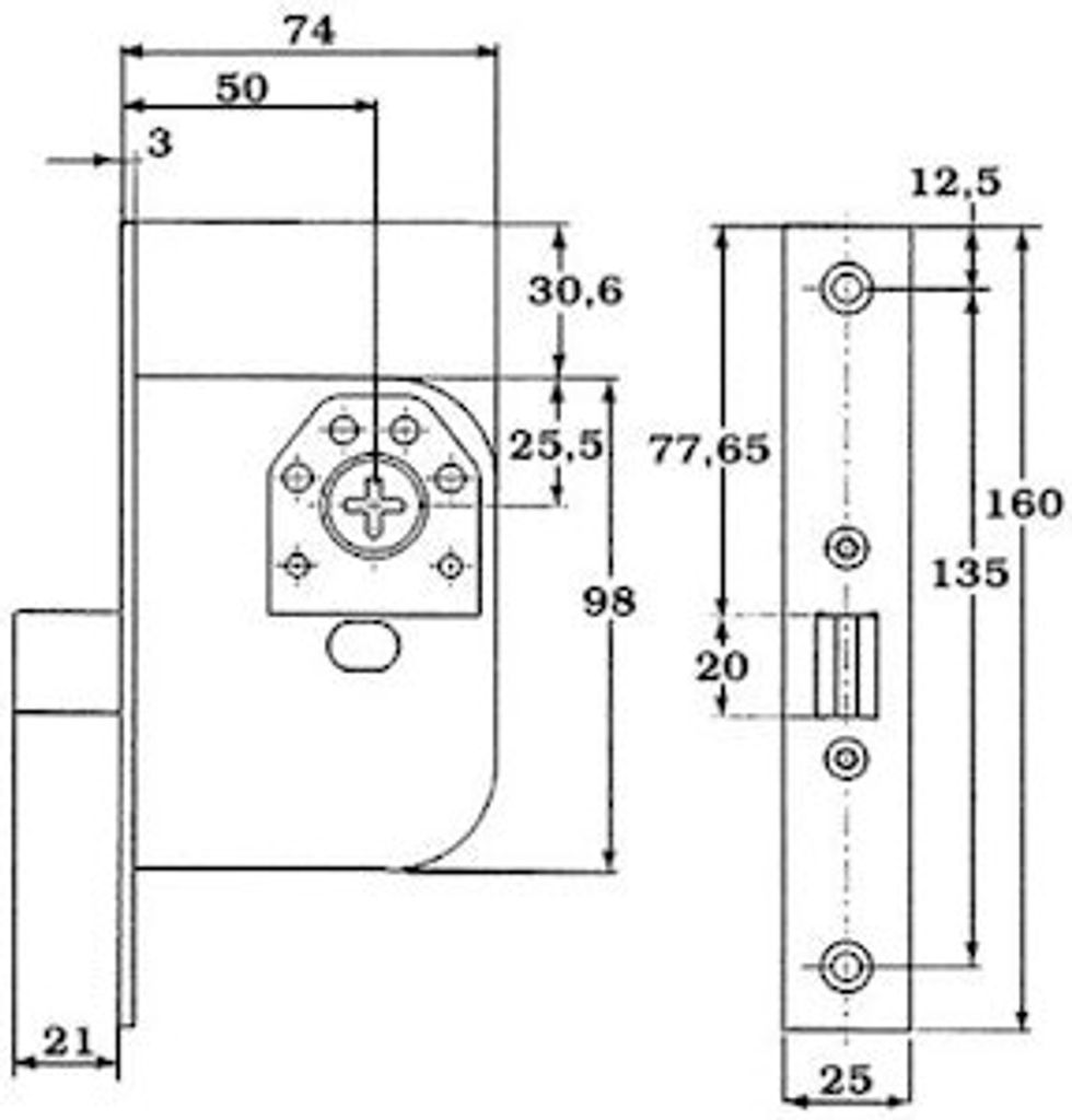 Instickslås med speciellt urtagsmått. Låshuset försett med regel. Regeln låses ut och in med cylindernyckel alt. vred och förreglas automatiskt vid 21mm utlåsning. 360° nyckelvridning, d.v.s. tvångsstyrd regel. Denna typ av lås är avsett att beslås med rund dubbelcylinder, alternativt rund enkelcylinder med magnetvred på insidan.