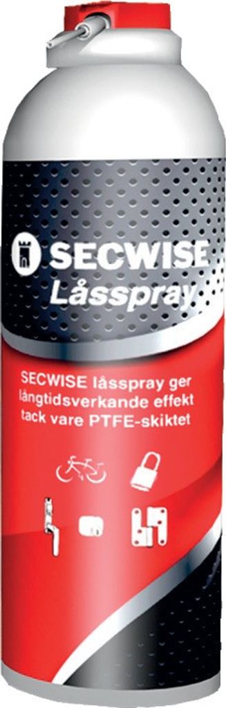 Secwise låsspray är en torr smörjspray som löser och skyddar mot rost. Binder ej damm och smuts. Innehåller teflon som ger lägsta friktion, slitage och ökar livslängden på lås. En prisvärd låsspray.