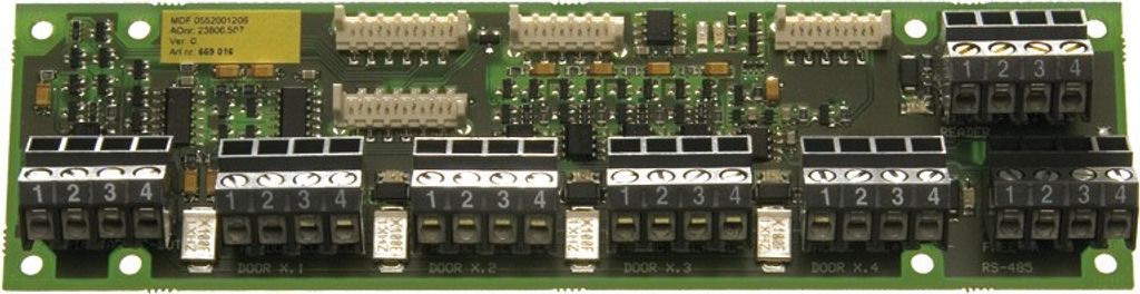 Till centralenhet 9016. Anslutningar för 4 st dörrmiljöer.