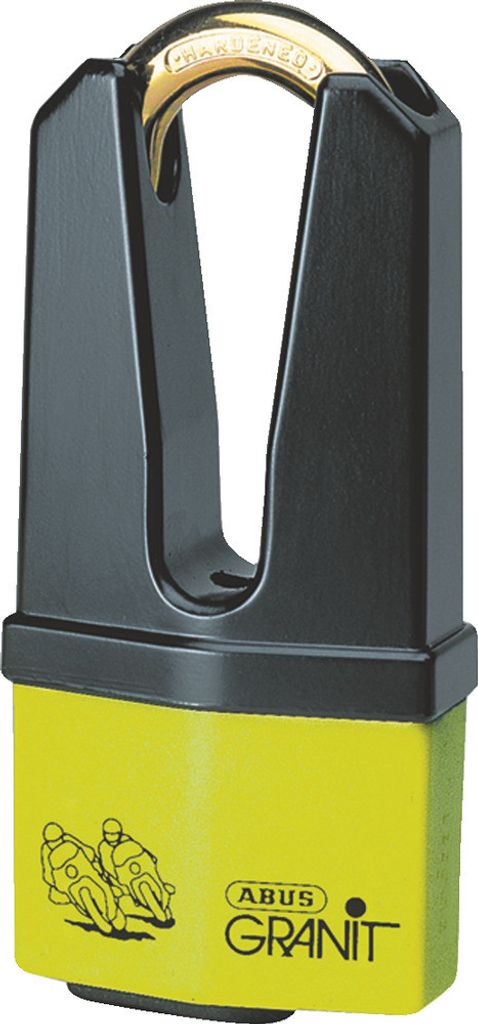 Låshus och bygel i härdat specialstål. Två nycklar ingår. Godkänt av försäkringsbolagen för MC. Hållare köps separat.