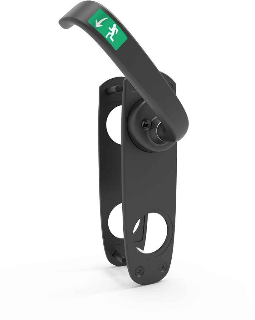 SAFETRON 794 i mattkrom för högerhängda dörrar. SAFETRON 794 är anpassat för slagdörrar i modulprofilutförande med krav på nödutrymning. SAFETRON 794 är godkänt som nödutrymningsbehör ihop med SAFETRON SL620 och SL630 och monteras på insidan.