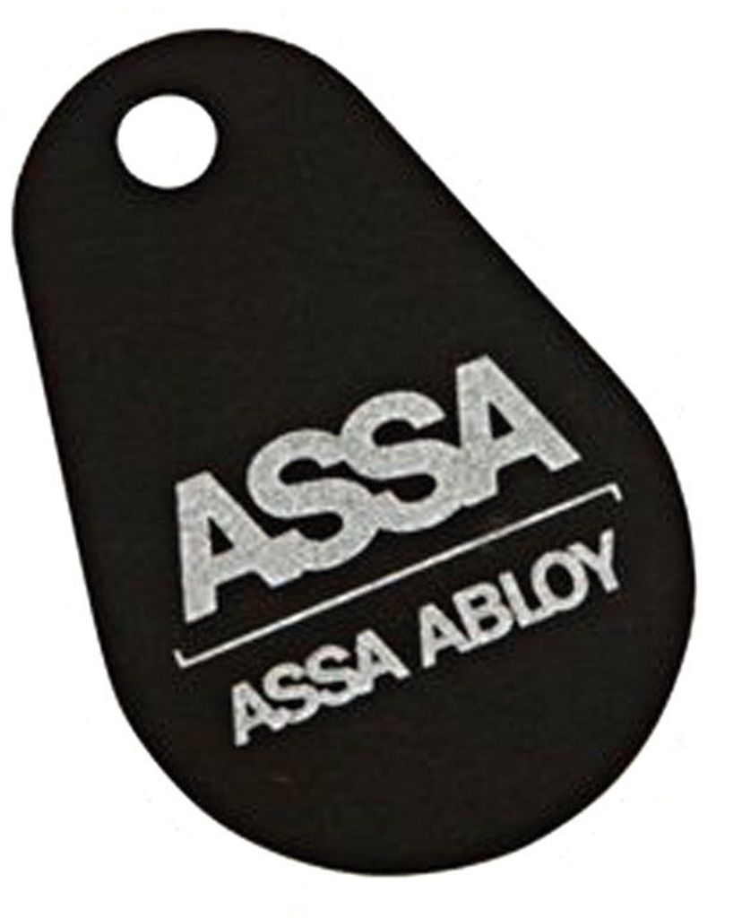 Svart, beröringsfri passerbricka till ASSA:s beröringsfria läsare med Mifare. Chip nummer utläst på baksidan i MFd format.