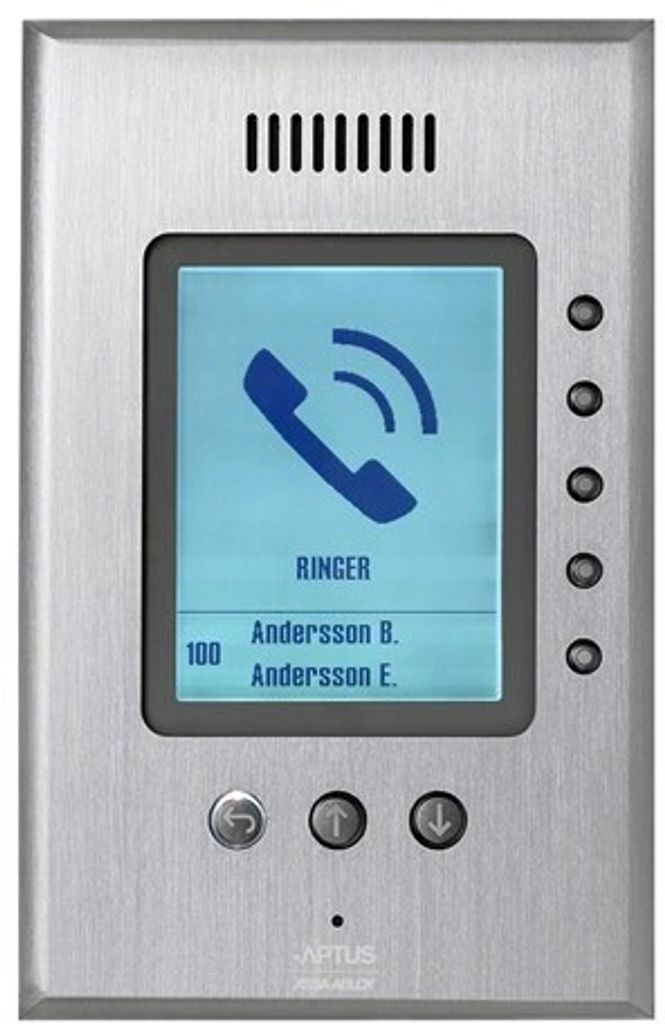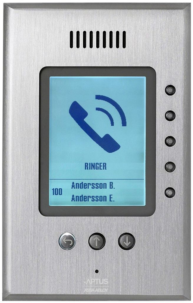 Beröringsfri läsare dold bakom display, välj vem som skall ringas via displayen. Läser beröringsfria kort och nycklar (APC, APT och Aptusnyckel, EM). Uppringning direkt till svarsapparat (AT 20 och AT 21), via telefonnätet eller IP-telefon (kräver ATA-box från IP-telefoni-leverantör). Inbyggd summer, inbyggd sabotagekontakt. Kan styra extern summer.