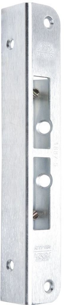 Monteras med snedställda skruvar för att motstå högre brytkrafter och väsentligt öka inbrottskyddet. Passar samtliga modullås. Glansförzinkat stål. Passar höger- och vänsterdörrar.