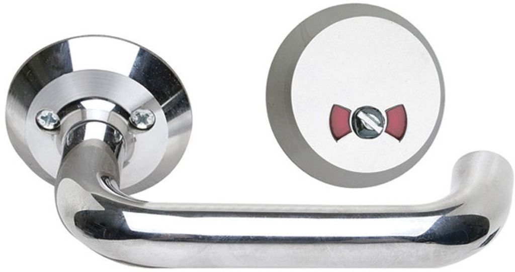 Montera insidans flip-up-trycke [9] och utsidans toalettskylt [8] med 2 st M5-skruvar [10]. Anpassa skruvlängden efter dörrens tjocklek.