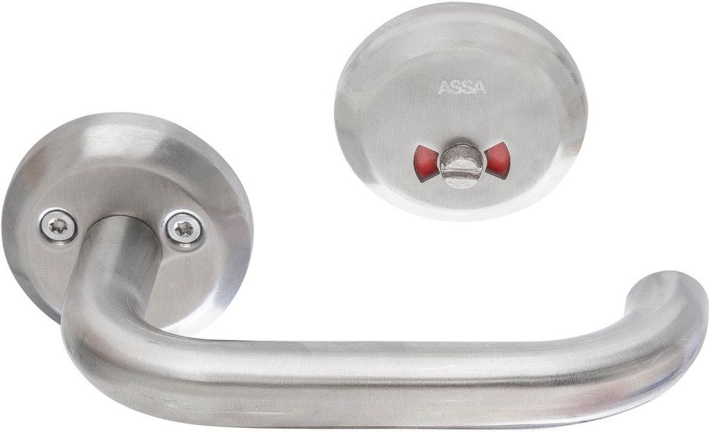 Tillgänglighetsanpassat wc-behör i rostfritt stål med Flip-up funktion. Låses eller öppnas från insidan genom att det invändiga trycket förs uppå eller nedåt 'flip-up'.