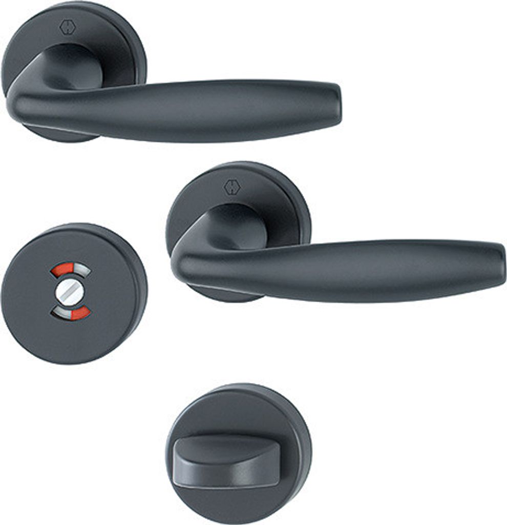 Hoppes handtag New York, serie Duraplus, i svart, för innerdörr. Inkl. WC-beslag med röd/vit indikering. Med sin unika fastsättning med Kvick-i-Sprint blir montaget stabilare och behöver inte heller återskruvas efter montaget. Dubbelverkande returfjäder. Handtaget är nickelfritt och orsakar därför inte nickelallergi. Dörrtjocklek 37-40mm. 10 års funktionsgaranti.