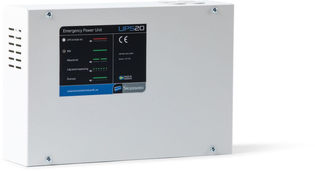 UPS20 är en 1-fas standby /offline UPS med inbyggt underhållsfritt blybatteri. Snabb omkopplingstid, 2-8mS till UPS läge och snabb uppladdningstid (7 tim) av batteriet.