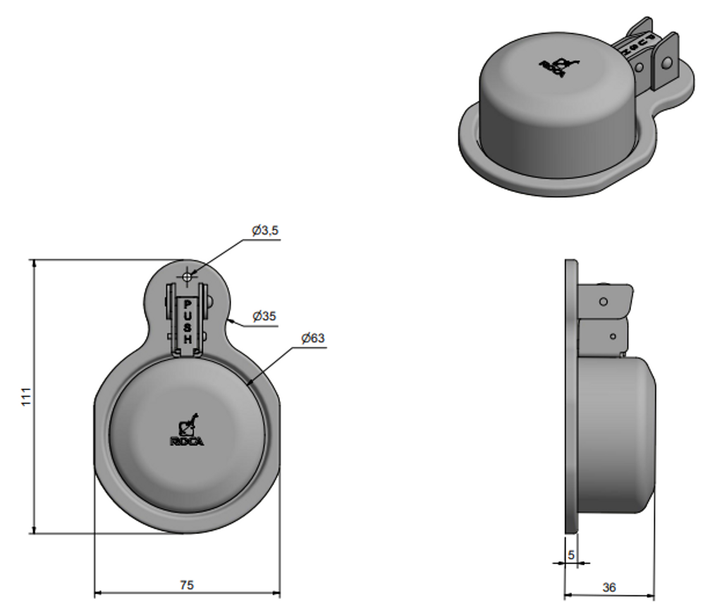Vredkåpa monett förhindrar öppning via brevinkastet. Höjd: 111mm, Bredd 75mm.
